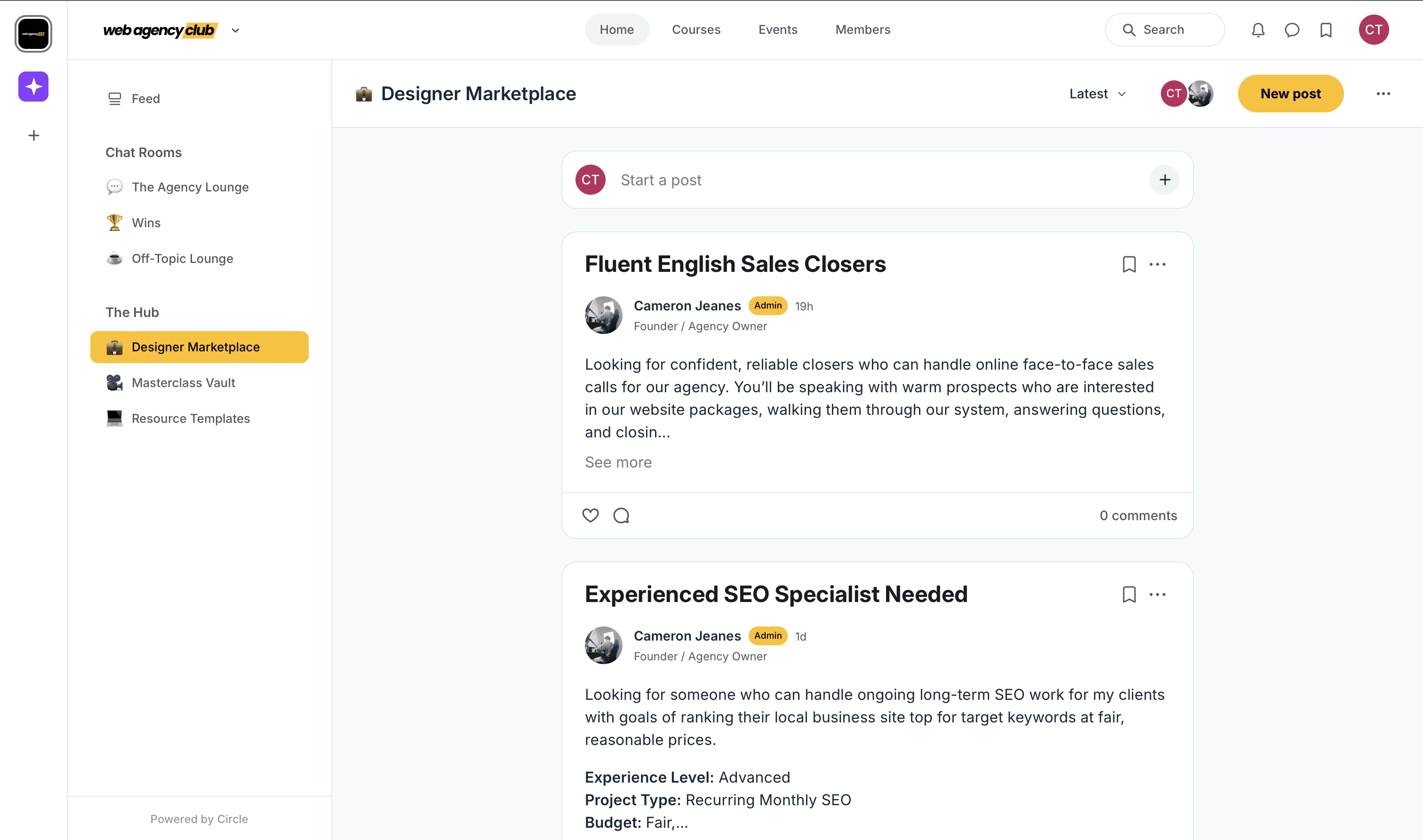 Find paid projects or connect with reliable designers you can outsource inside the club.